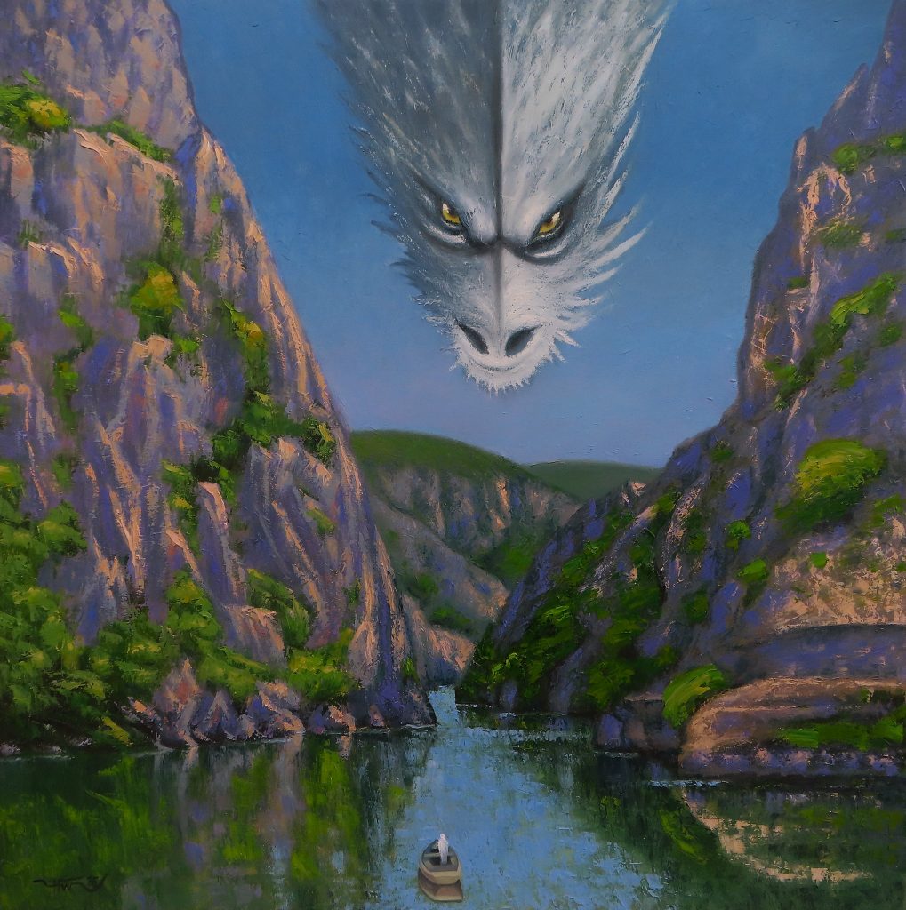 Во сликата „Вистина“ уметникот прави невообичаен автопортрет. Тој е свртен кон гледачот со грб. Лицето на сликарот, нестандардно е свртено кон самата слика, кон она што се случува во Универзумот, во небото. Не, тоа не е его или бегство од нас кои гледаме во сликата. Тоа е внатрешно пресликување на себеси во целината, во Сѐ! Трагите видливи во ноќниот бескрај (слични на оние кои ги виде Винсент ван Гог во една ѕвездена ноќ, јуни 1889 година) овојпат се врежани во главата на сликарот, мапата на небото е изгравирана во неговата свест. Она што е насликано во духовниот простор на небото се пресликува во черепот на уметникот. Понтиј Пилат во невозможноста да ја открие и види големината на Христос, праша: – „А што е вистина?“ Тоа прашање остана да одекнува низ времето како сведоштво на еден изгубен човек со моќ, но без слобода. И денеска ние изгубени во хаосот на секојдневните можности на технологијата и „напредокот“ на светот, постојано го поставуваме прашањето на Пилат, „А што е вистина“, и тоа одекнува како ехо кое непрекинато ни се враќа без одговор. Повторувајќи се во бескрајност…