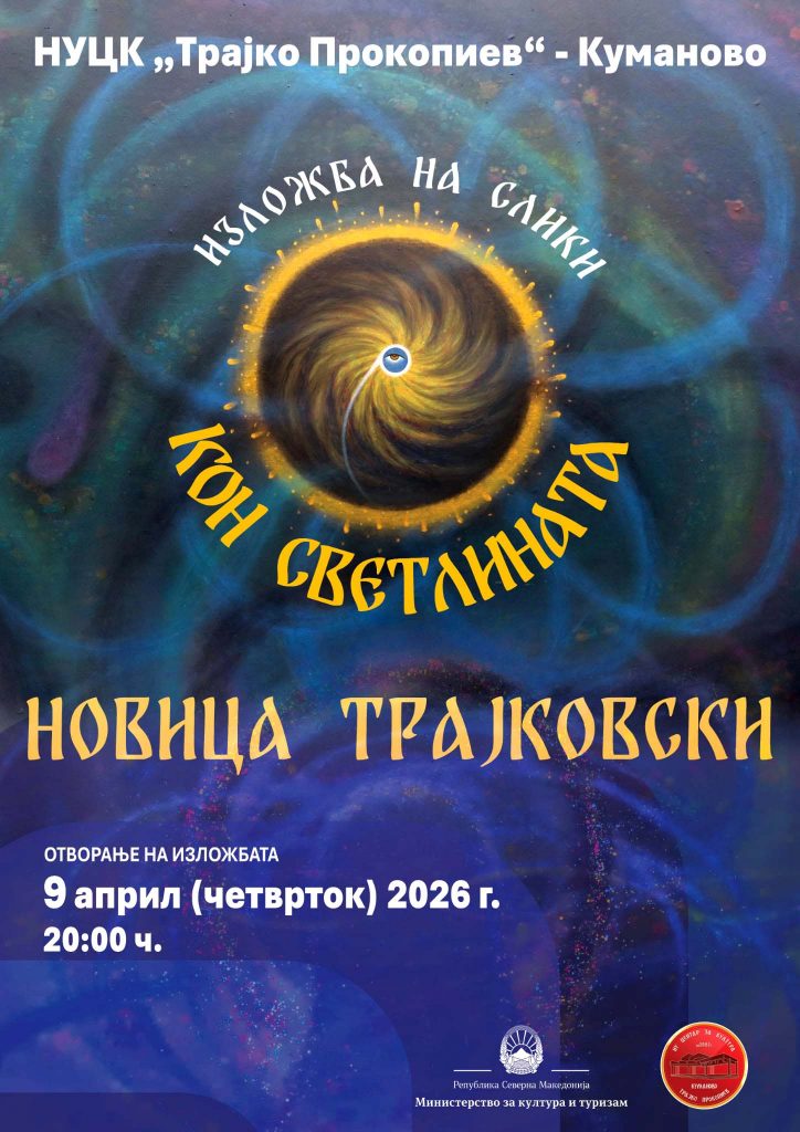 На 09.04.2026 / четврток/ со почеток во 20 часот во Изложбениот салон на НУ Центар за култура “Трајко Прокопиев“ – Куманово ќе биде отворена изложбата “Кон светлината“ од авторот Новица Трајковски. Изложбата содржи 20 слики од најновата продукција на Трајковски работени во техниките масло и акрил на платно.