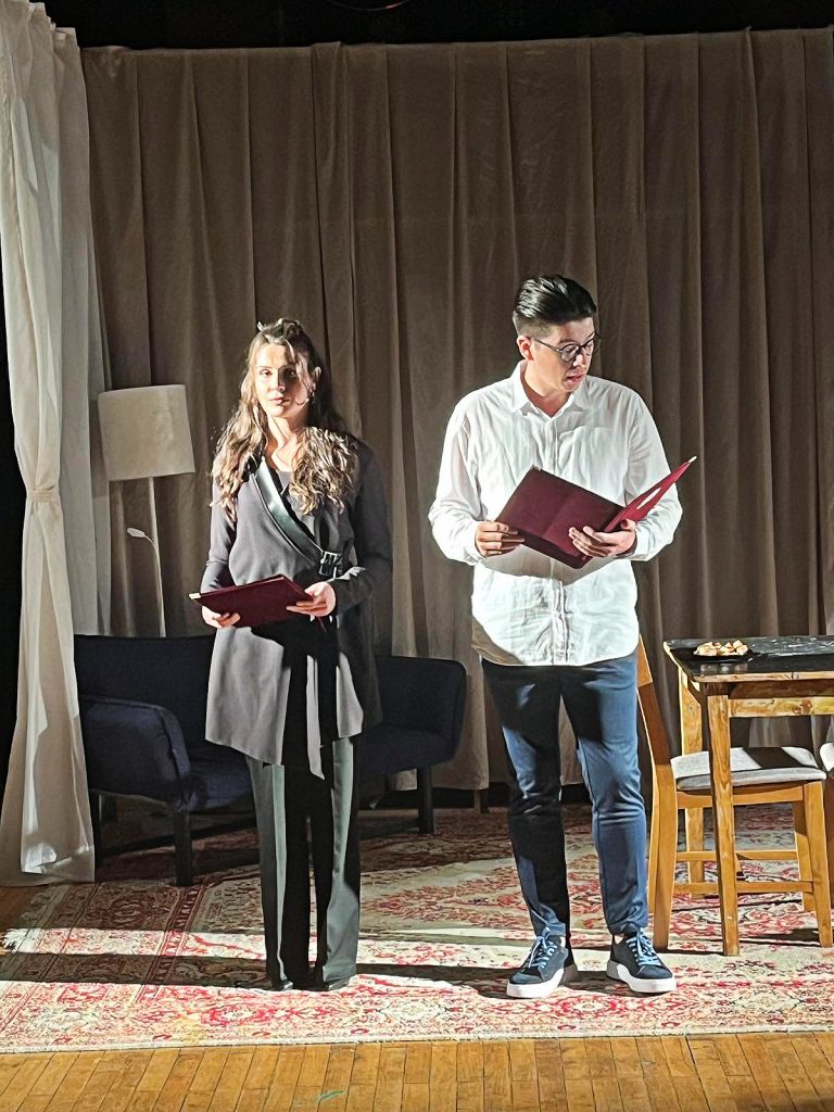 Пораките ги прочитаа акерката – Анастасија Величковиќ и актерот Никица Јанковски. Во претставата играат: Сања Русеска, Марко Трајковиќ и Владо Дојчиновски.