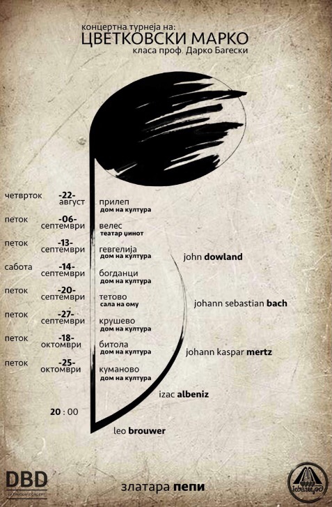 КОНЦЕРТ – МАРКО ЦВЕТКОВСКИ, ГИТАРА 25.10.2019 МАЛА САЛА (ПЕТОК) 20ч. 17/10/2019 НУ ЦЕНТАР ЗА КУЛТУРА “ТРАЈКО ПРОКОПИЕВ“ КУМАНОВО МАЛА САЛА (ПЕТОК) 20ч.