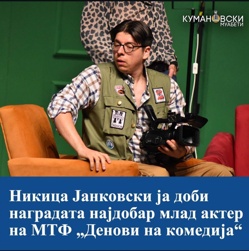 Годинава на МТФ Денови на комедија 2025 Куманово, актерот Никица Јанковски ја доби наградата за најдобра улога за млад актер, во претствата „Разбуди се Тина“ на Театар Куманово,